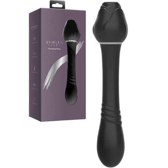 The Ashella Vibes Suction Rose Thrusting Vibrator is a dual-stimulating USB rechargeable women’s sex toy! Thrusting Rose targets your clitoris intense suction in the shaft, flip it over and use the other sides thrusting shaft bringing you to ecstasy.