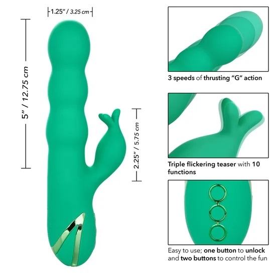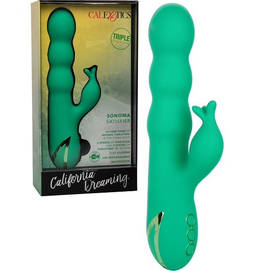 The California Dreaming Sonoma Satisfier Rabbit Vibrator by CalExotics is a dual-stimulating rechargeable women’s sex toy! targets your g-spot with its beaded thrusting and vibrating shaft, whilst the rabbit ear vibrates and flickers on your clitoris simultaneously bringing you to ecstasy.