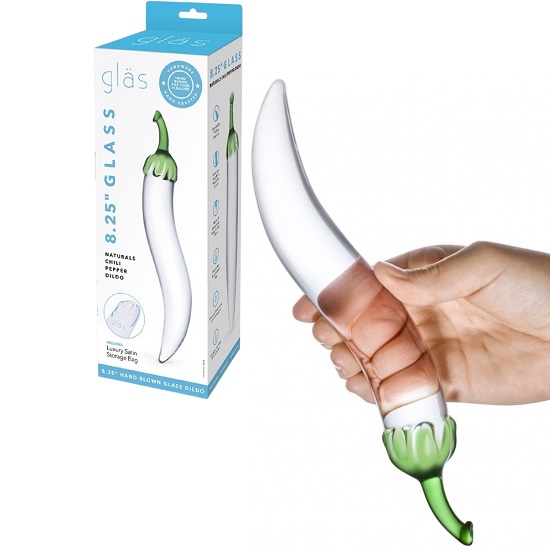 The Glas 8.25 Inch Glass Naturals Chili Pepper Dildo by Electric EEL is a vaginal and anal stimulating sex toy for women and men and made to play hard! Elegant hand-crafted with amazing attention to details are a luxurious line of glass massagers that will leave you breathless.