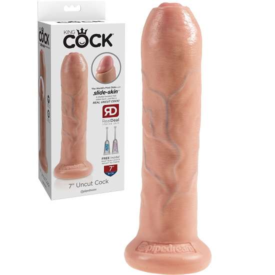 This realistic King Cock uncut dildo has a flexible shaft and lifelike movable foreskin that slides back just like a real uncut cock.