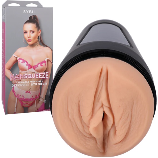 The Main Squeeze Sybil Pussy Stroker by Doc Johnson is a male masturbation sex toy and is part of the Docs hard case masturbators and is always in reach. Main Squeeze starring our most popular porn star molds designed to put the power in your hands.