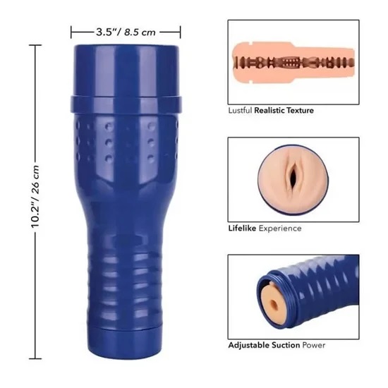 The Julia De Lucia Pussy textured inner chamber of this masturbator is made from Real Skin Technology, giving you the life-like feel of sex, while the adjustable cap allows you to fine-tune the interior suction feel to exactly the tightness you crave.